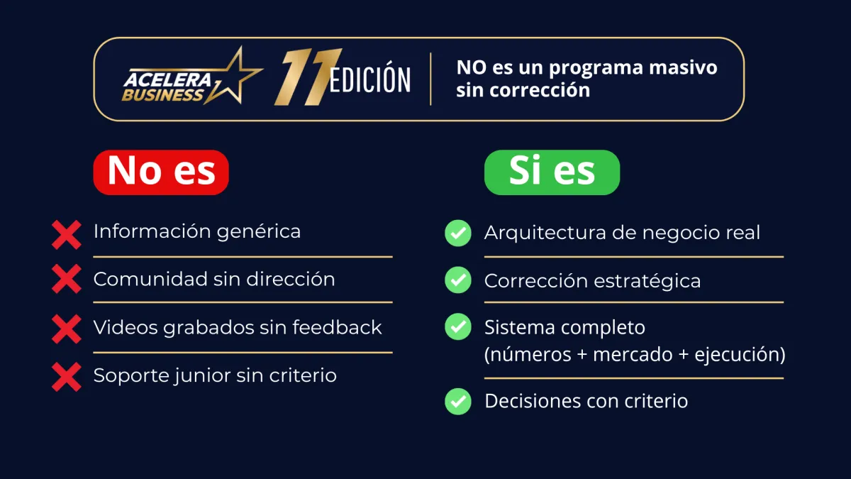 Diseñas tu oferta con criterio. Seleccionas los canales correctos. Construyes un sistema de ventas que convierte, no que consume.